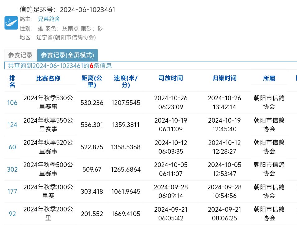 朝陽市鴿會四關(guān)大獎(jiǎng)賽綜合鴿王47名