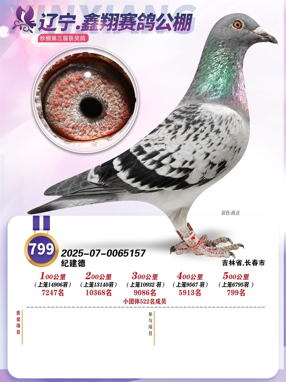 - 當前查看拍賣鴿:奶酪-鑫翔工棚決賽799名