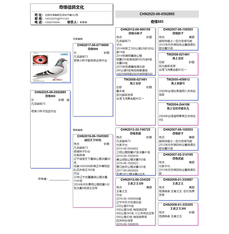 3、注明:請注意看種鴿和血統(tǒng)圖片,有的種鴿環(huán)卡丟失,有些獎鴿無環(huán)卡和獎狀和血統(tǒng),介意請勿出價;