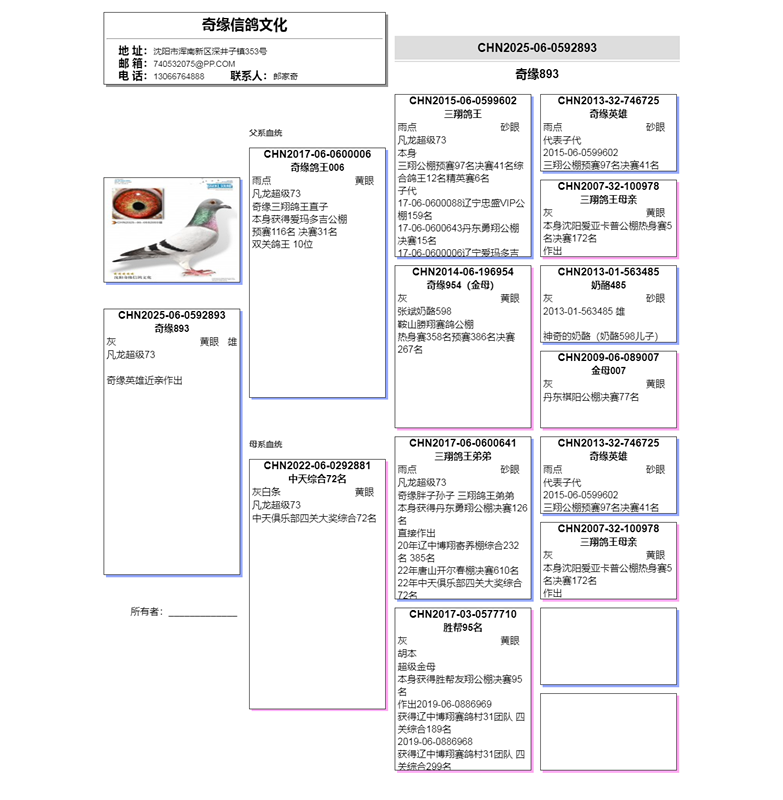 3、注明:請注意看種鴿和血統(tǒng)圖片,有的種鴿環(huán)卡丟失,有些獎鴿無環(huán)卡和獎狀和血統(tǒng),介意請勿出價;