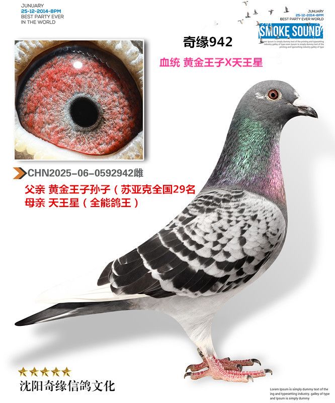 2、注明:鴿子在照片制作中,通常會使用Photoshop的圖片翻轉(zhuǎn)功能,造成視覺上足環(huán)位置的顛倒(左右腳互換),鴿子足環(huán)的位置以實物為準(zhǔn);