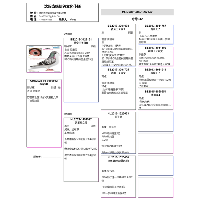 3、注明:請注意看種鴿和血統(tǒng)圖片,有的種鴿環(huán)卡丟失,有些獎鴿無環(huán)卡和獎狀和血統(tǒng),介意請勿出價;