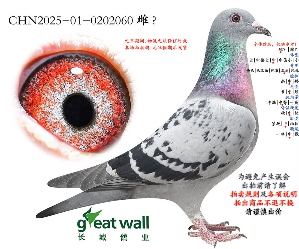 因拍賣鴿均是未做育過的種鴿或幼鴿,圖內(nèi)所標(biāo)雌雄僅供參考,實(shí)際性別已實(shí)物為準(zhǔn)。