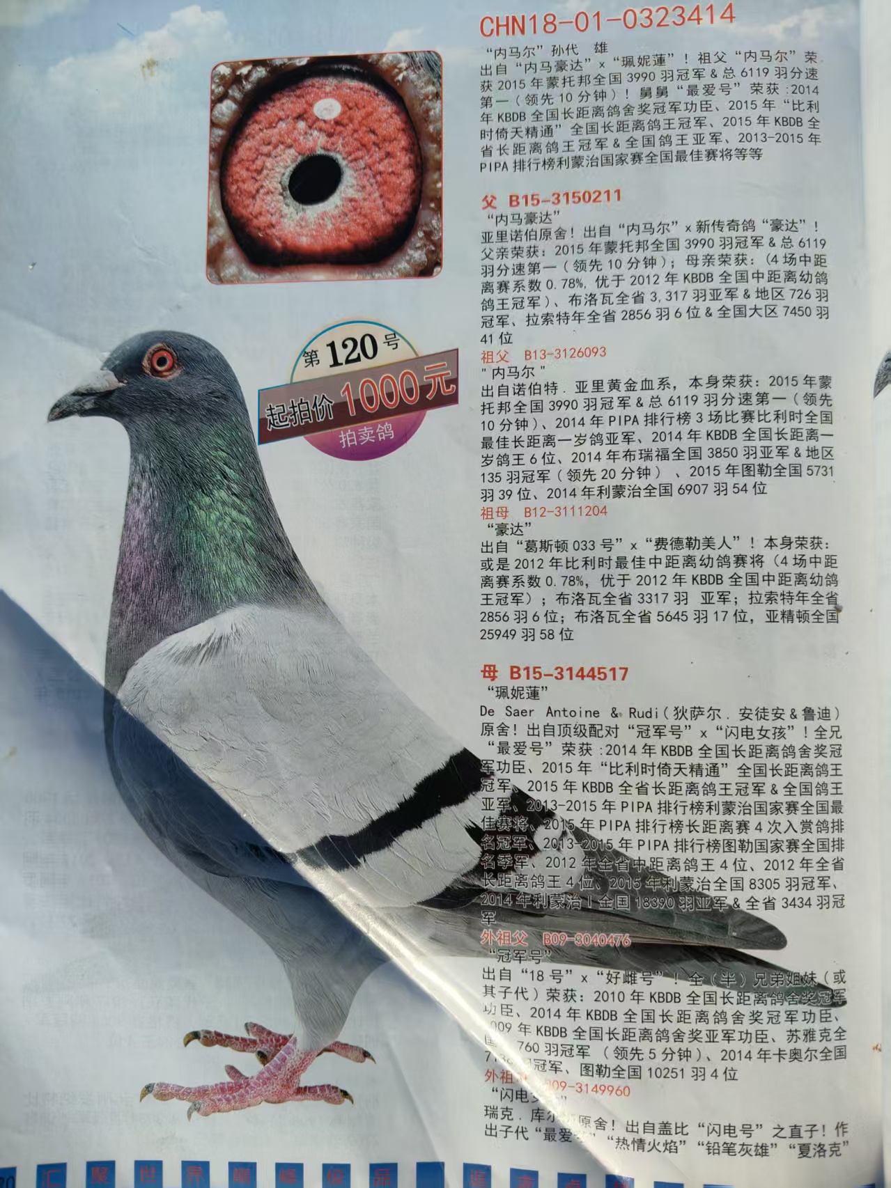 4、本期拍賣鴿有血統書的都已經上傳,沒有上傳的代表沒有血統書及足環(huán)證,介意勿拍,以免后續(xù)發(fā)生不必要麻煩。