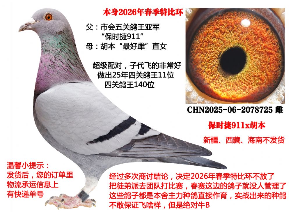 4、本期拍賣(mài)鴿有血統(tǒng)書(shū)的都已經(jīng)上傳,沒(méi)有上傳的代表沒(méi)有血統(tǒng)書(shū)及足環(huán)證,介意勿拍,以免后續(xù)發(fā)生不必要麻煩。