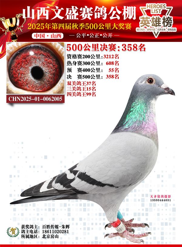 這羽神奇種鴿作為賽鴿獲得6項(xiàng)冠軍,作為種鴿更加優(yōu)秀。