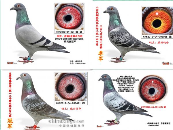 山西威羽鴿舍——王宏偉先生常年征戰(zhàn)北京,西安探索者等大型寄養(yǎng)棚,及太原本地大特比及公棚比賽,十幾年來(lái)獲得特比環(huán)冠軍鴿王冠軍數(shù)不勝數(shù),多次創(chuàng)造夢(mèng)幻連隊(duì)。!