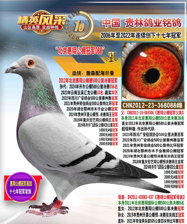 中國貴林鴿業(yè)2006年至2024年連續(xù)創(chuàng)下十八年冠軍記錄.親情九月特惠幼鴿分享共創(chuàng)輝煌!