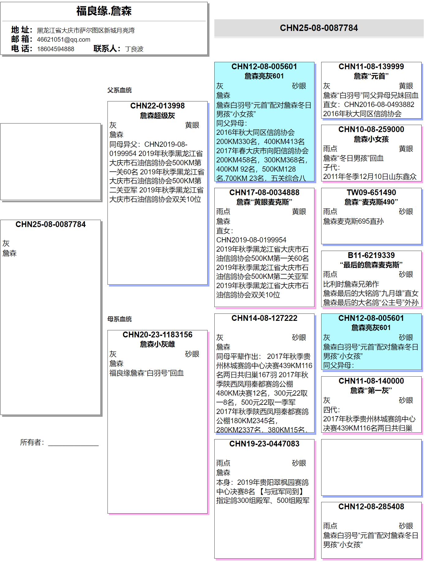 | 1610106 | 詹森鴿王雙亞軍/詹森019 | ¥1000元 | 1次 |