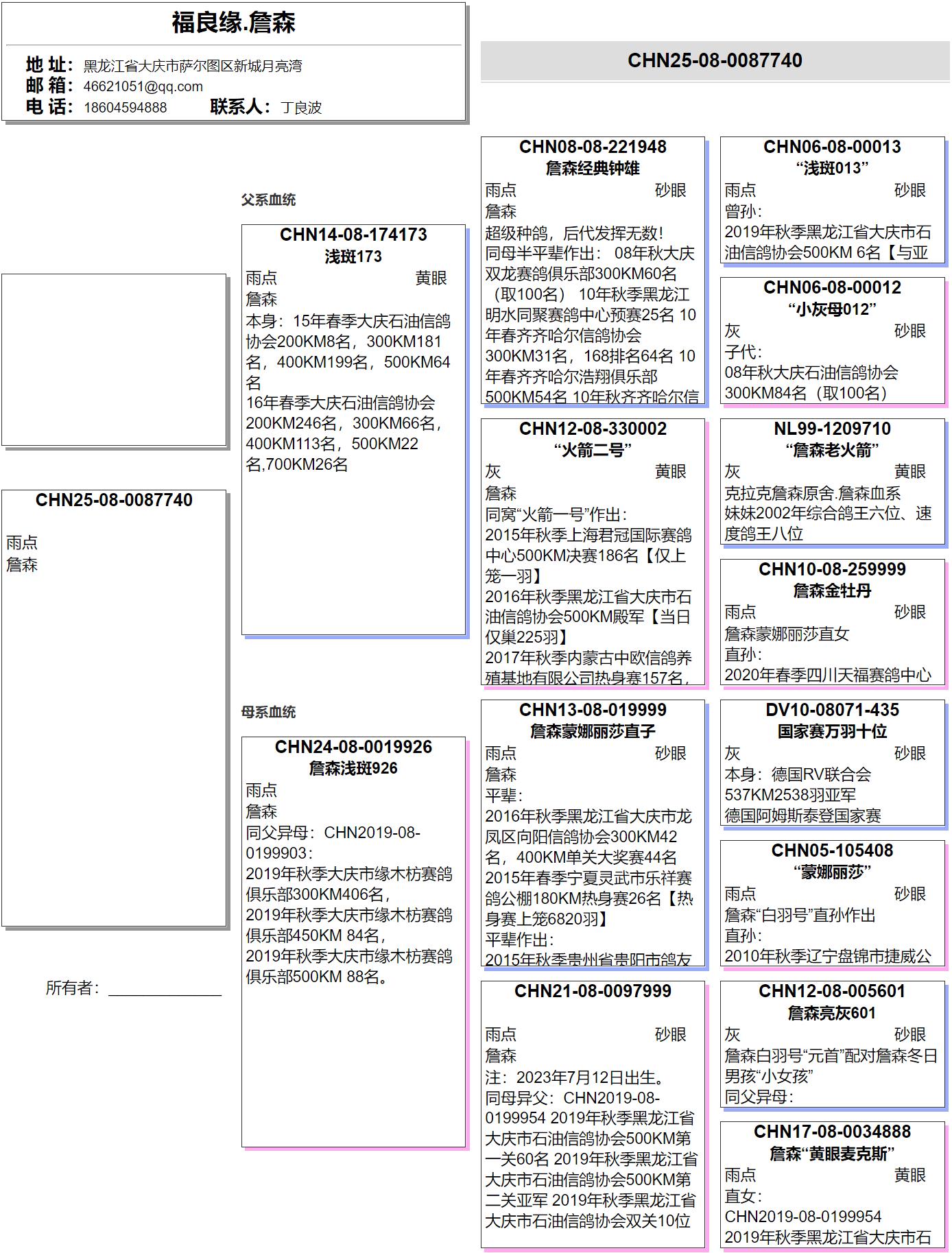 曾外祖父:“國家賽萬羽十位”DV08071-10-435
