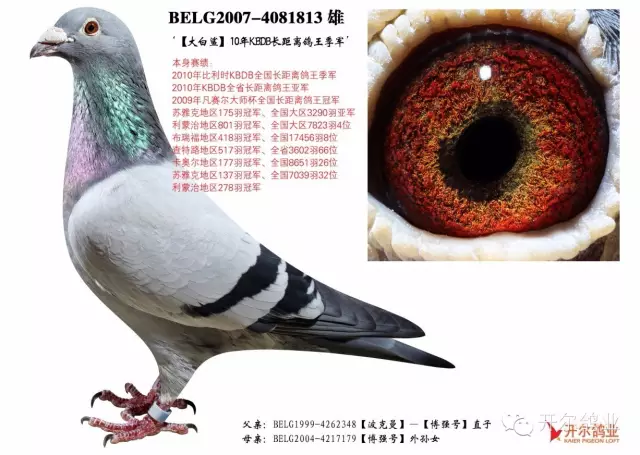 愛克、大白鯊、新鴿王、新山坦士、卡拉、詹姆士龐德……這些落戶開爾的世界頂級(jí)賽鴿,叱咤KBDB賽場(chǎng)的名將,經(jīng)過開爾鴿業(yè)的精心馴養(yǎng),作出了“愛克魔王”、“百鳥朝鳳”等為代表的眾多優(yōu)秀賽將,它們的后代也繼續(xù)在公棚、俱樂部、協(xié)會(huì)各項(xiàng)賽事取得優(yōu)異賽績(jī)。2016新誕生的賽將,正在積蓄力量,等待展翅翱翔、創(chuàng)造屬于自己的輝煌時(shí)刻。