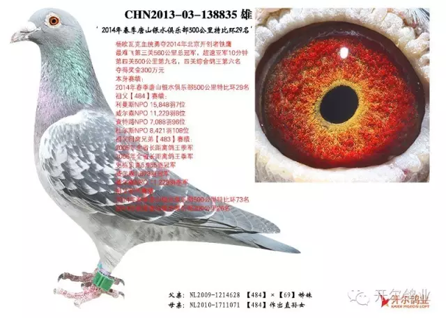 2014年秋季北京開創(chuàng)者鐵鷹鴿王賽首關(guān)500公里769名,第二關(guān)500公里392名,第三關(guān)560公里冠軍(超出亞軍10分鐘),第四關(guān)500公里9名,四關(guān)鴿王綜合6名,奪得獎(jiǎng)金300萬元