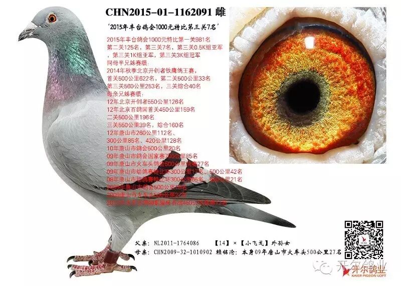 本身賽績(jī):2015年豐臺(tái)鴿會(huì)1000元特比第一關(guān)981名,第二關(guān)125名,第三關(guān)7名