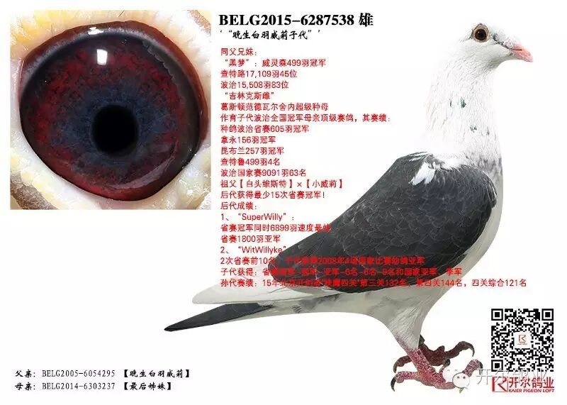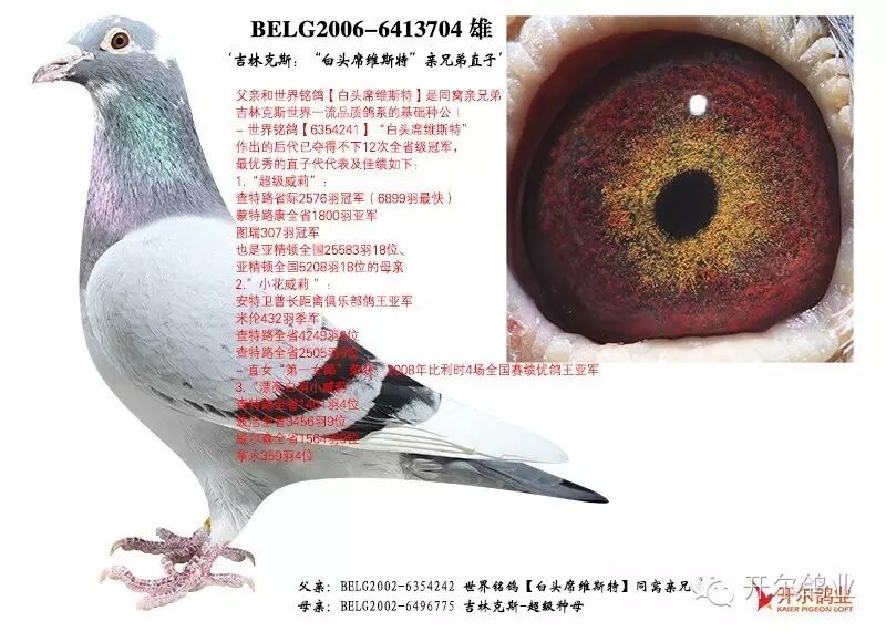 開爾鴿業(yè)正是感受到了這股新星力量,特精心挑選海外引進(jìn)吉林克斯家族的愛鴿,15羽愛鴿均為吉林克斯當(dāng)紅血系優(yōu)秀鴿,例如: