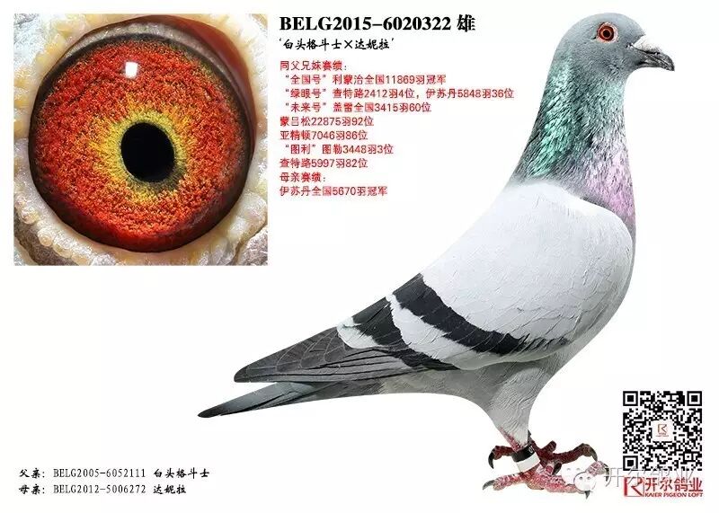 母親為巴特.吉林克斯原舍,她是“艾!备赣H的全姐妹,“艾!鲍@得2015年布達(dá)佩斯奧林匹克C類冠軍和2013年KBDB全國(guó)中長(zhǎng)距離鴿王亞軍