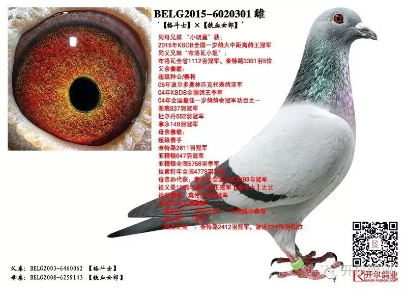 “小明星”獲:2015年KBDB全國(guó)一歲鴿大中距離鴿王冠軍同母兄妹
