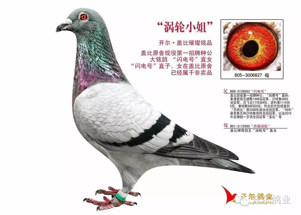 蓋比原舍:【渦輪小姐】,大銘鴿【閃電號】直女,開爾珍藏的【閃電號】27羽直子女群之一,其全兄弟【蓋比新星】為文斯特拉作出包括5次省賽和2次國家賽高位入賞鴿!鹃W電號】直子女現(xiàn)在蓋比本舍已屬非賣品。