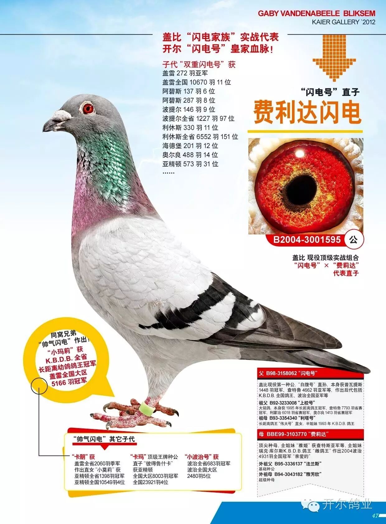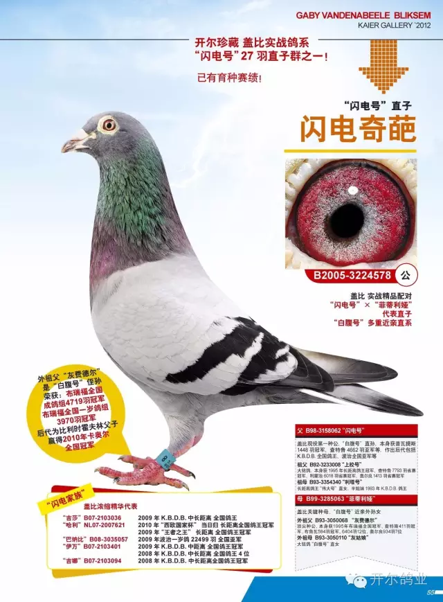 他是英國最著名的蓋比.凡德那比勒原舍種鴿之一,英國強豪比爾.豪格舍內(nèi)的超級種雄。 優(yōu)秀子代代表及佳績: