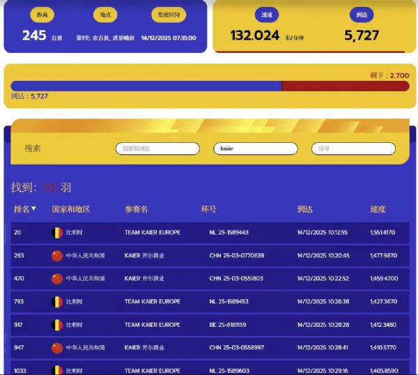 芭提雅賽事首關(guān)鳴槍?zhuān)?/font>59國(guó)精英同臺(tái)競(jìng)技,8427羽賽鴿振翅競(jìng)翔,開(kāi)爾戰(zhàn)隊(duì)斬獲20、293、470名等。